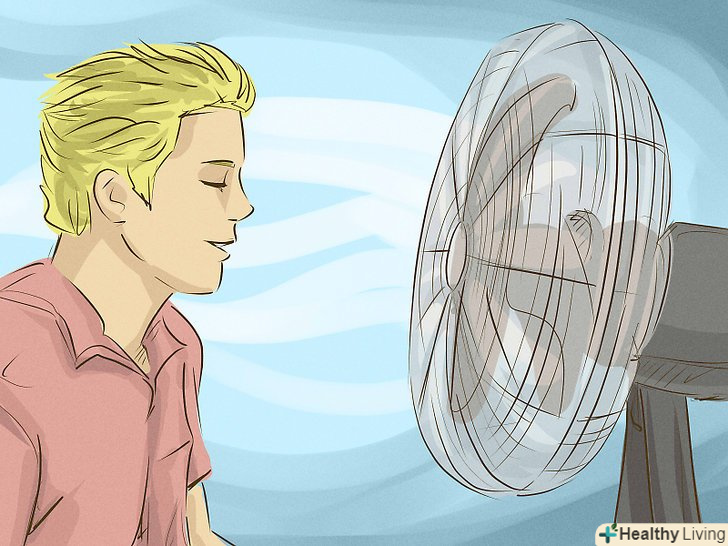 Сідайте навпроти вентилятора, щоб повітря дув вам прямо в обличчя.справа не тільки в тому, що прохолодне повітря допомагає розслабитися. Вентилятор дає відчуття, що повітря дуже багато, а це може знизити ваше кисневе голодування. Залежно від швидкості, вентилятор може навіть безпосередньо задувати повітря в рот і ніс.[15]- В якості альтернативи, можна також покласти холодну ганчірку на лоб, вона допоможе вам заспокоїтися.[16]