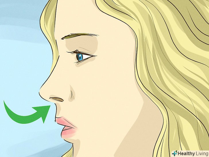 Повільно вдихайте носом, порахувавши до двох.рот повинен бути закритий, щоб у вас не виникла спокуса вдихнути ротом. Потрібно зробити неглибокий вдих, так що не намагайтеся увібрати багато повітря, вважаючи до двох.- Розслабте шию і плечі під час дихання.[19]