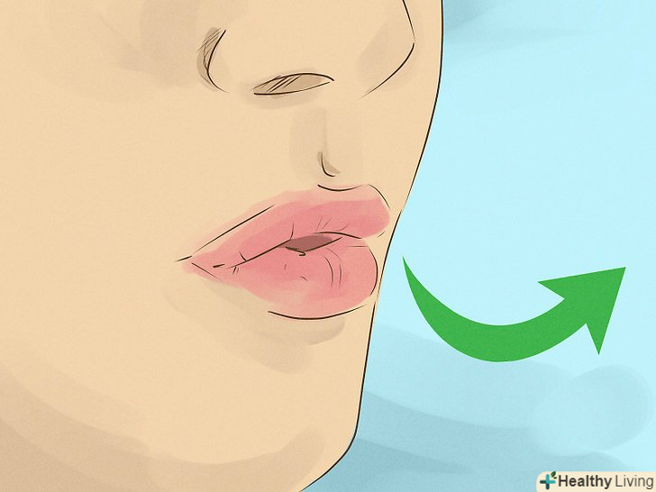 Стисніть губи так, ніби хочете задути свічку.складіть губи так, ніби збираєтеся свистіти або подути на щось. Ваша мета-повільний потік повітря, що виходить з рота.[20]