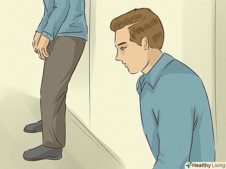 Стійте, притулившись стегнами до стіни.Встаньте за крок від стіни. Розслабте м'язи і поставте ноги на ширині плечей. Притуліться до стіни сідницями і попереком. Трохи нахиліться вперед, опустивши руки вниз або впершись їх в стегна. Уявляйте, як напруга залишає ваше тіло.[24]