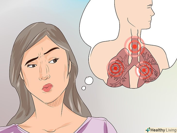 Фактори ризику бронхіту.крім звичайних симптомів, існує безліч факторів ризику, які можуть збільшити ймовірність розвитку бронхіту. До цих факторів відносяться: немовлята і люди похилого віку, забруднення повітря, куріння і пасивне куріння, екологічні зміни, хронічний синусит, трахеостомія, бронхолегенева алергія, СНІД, алкоголізм і гастроезофагеальна рефлюксна хвороба.[18]- У здорових людей бронхіт являє собою хворобу самообмеження (це означає, що ваш організм зможе відновитися самостійно без будь-якого спеціального лікування). Більш того, досить часто прийом антибіотиків не рекомендується і зовсім. Якщо ваші симптоми не проходять більше місяця або якщо у вас виникли питання або побоювання, зверніться до лікаря за консультацією або за медичним лікуванням.[19]