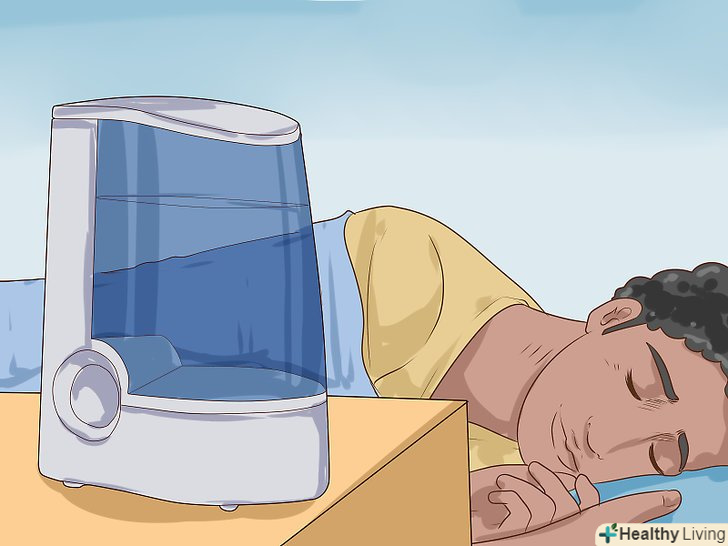 Використовуйте зволожувач повітря.[4] увімкніть його на ніч і спите, поки він працює. Вдихаючи тепле і вологе повітря, ви тим самим розрідити слиз в дихальних шляхах, що полегшить дихання і знизить тяжкість кашлю.- Чистіть зволожувач повітря відповідно до інструкцій виробника. Якщо ви не почистіть зволожувач повітря, то всередині ємності для води можуть оселитися бактерії і грибок, після чого вони поширяться в повітрі. Наявність в повітрі бактерій і грибків може ускладнити бронхіт.
