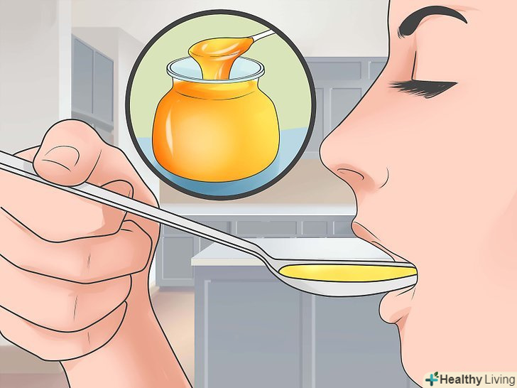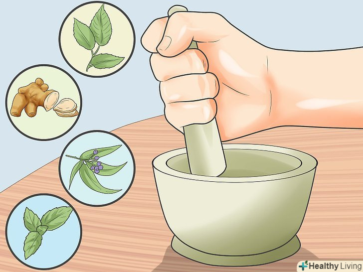 Придушіть кашель.використовуйте для цього такі натуральні засоби від кашлю, як камфора, евкаліпт і мед. Пам'ятайте при цьому, що мед не можна давати дітям молодше одного року. Спробуйте з'їдати по столовій ложці меду три рази на день, щоб пом'якшити біль в горлі. Можна також додавати в розчин для парової ванни 1-3 краплі камфорного, евкаліптового або ментолового ефірного масла і дихати парою. Крім того, можна натирати груди і ділянки навколо носа мазями з камфорою і ментолом, щоб придушити кашель.- Зазвичай кашель є природною реакцією організму, яка дозволяє позбутися від слизу і подразників, тому його не завжди потрібно пригнічувати. Однак якщо кашель настільки сильний, Що заважає вам спати або концентрувати увагу, або викликає біль в тілі, його можна придушити за допомогою натуральних засобів.