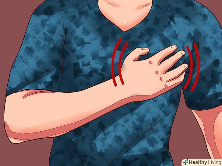 Навчіться розпізнавати ознаки інфаркту.оскільки фібриляція передсердь збільшує ймовірність інфаркту; важливо знати, на які симптому потрібно звертати увагу. Якщо ви відчуваєте деякі або всі з наступних симптомів, то негайно зверніться до лікарні.- Дискомфорт в грудній клітці, часто в центрі грудей, який триває більше, ніж кілька хвилин або то йде, то повертається. Ви можете відчути стискання тиску, стиснення, відчуття переповненості або болю.
