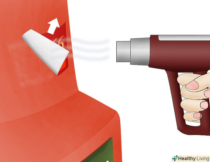 Тримайте фен приблизно в 15 см від наклейки і нагрівайте її протягом 1-2 хвилин.якщо кут наклейки не відстає, нагрівайте її довше. Теплову гармату тримайте від наклейки приблизно в 20-30 см.вона нагріє наклейку набагато швидше фена.