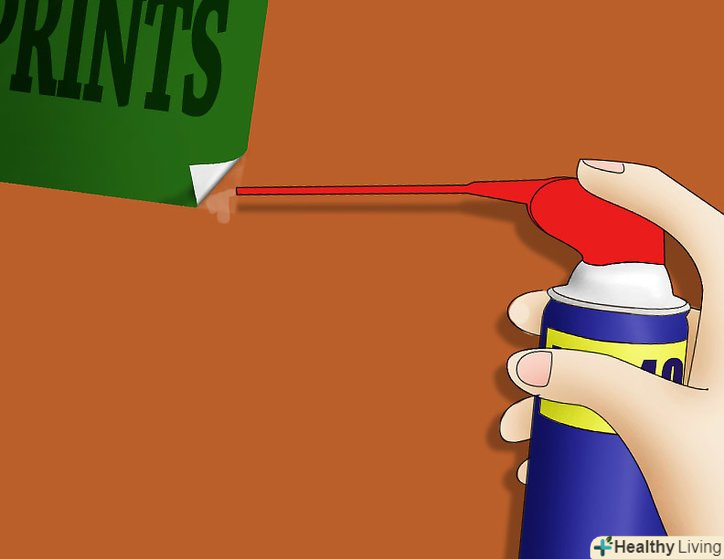 Продовжуйте розпилювати мастило і знімати наклейку, поки не позбудетеся від неї повністю.