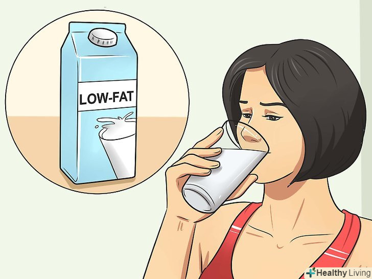 Доповніть свій раціон нежирними молочними продуктами.молоко є важливим джерелом кальцію і вітаміну D, однак слід уважно вибирати продукти, щоб в них не містилося багато жиру і солі. Намагайтеся щодня вживати 2-3 порції молочних продуктів. Одна порція становить 1 стакан (240 мілілітрів).[6]- У сирах часто міститься багато солі, тому їжте їх в помірних кількостях.