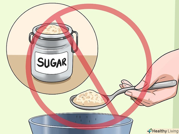 Обмежте споживання цукру.перероблений цукор збільшує кількість споживаних калорій і при цьому не забезпечує організм необхідними йому поживними речовинами. Обмежте споживання солодощів до 5 порцій (максимум) на тиждень. Порція еквівалентна одній столовій ложці цукру (20 грамів) або желе (15 мілілітрів).[9]- Можна використовувати штучні замінники цукру, наприклад сукралозу, аспартам або сахарин, проте вживайте їх в помірних кількостях.