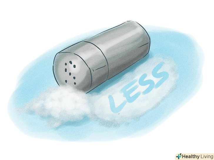 Їжте менше солі.через солі наш організм затримує більше води, що викликає набряки, може позначитися на венозному тиску і привести до поганої циркуляції крові. Спробуйте скоротити споживання солі вдвічі і уникати підсолювання їжі після приготування.[7]- Намагайтеся побільше готувати вдома, а не харчуватися в кафе і ресторанах. Ніколи не знаєш, скільки солі там поклали в їжу, а її зазвичай більше, ніж здається.