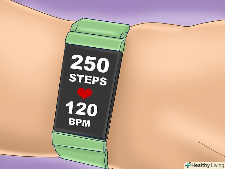 Використовуйте фітнес-трекер для мотивації до фізичних навантажень.фітнес-трекери і подібні до них пристрої, які ви носите на собі, ведуть облік скоєних вами кроків, пройдених сходинок, а в деяких випадках і вашого пульсу. Вони дозволяють встановлювати для себе щоденні цілі, яких Ви прагнете досягти. Завдяки їм, ви спонукаєте себе до підвищеної активності, тим самим покращуючи стан серцево-судинної системи.[32] ці пристрої допомагають забезпечити необхідне фізичне навантаження, особливо якщо ви тільки приступили до програми тренувань.- Це відмінна заміна особистому тренеру. Деякі люди просто не можуть собі дозволити оплатити послуги особистого тренера, тому подібні пристрої допомагають контролювати себе. З іншого боку, багато тренерів з фітнесу також використовують спеціальні програми, щоб стежити за фізичною активністю своїх клієнтів.