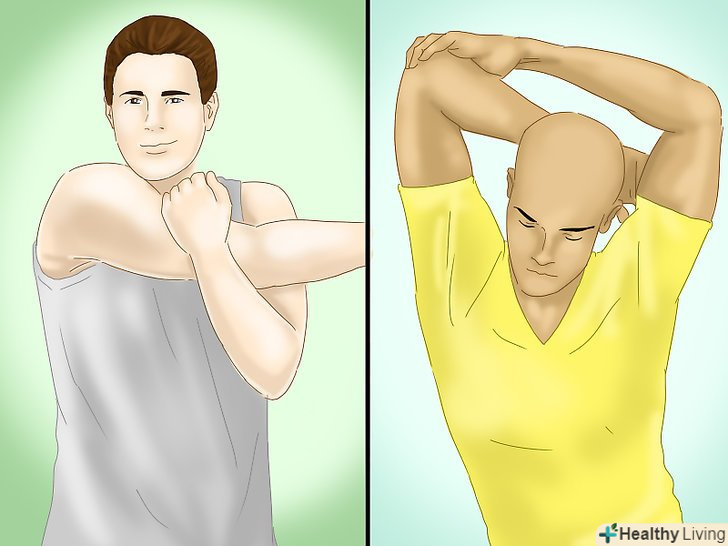 Не забувайте розігріватися перед тренуваннями і остигати після них.розігрів дозволяє уникнути травм і допомагає тілу ефективно перейти від стану повільного обміну речовин (з меншою кількістю спалюваних калорій в хвилину) до стану з швидким обміном речовин (з великою кількістю спалюваних калорій).[17] охолодження дозволяє повернути посилений для роботи м'язів кровообіг в нормальний стан, знижує больові відчуття і зменшує ймовірність появи судом.[18]- Розігрів. Протягом перших 5-10 хвилин виконуйте ту ж навантаження, якою будете займатися під час тренування, але з істотно меншою інтенсивністю. Після розігріву також можна зробити розтяжку. Починаючи основну тренування, поступово підвищуйте інтенсивність навантаження до досягнення цільової частоти серцевих скорочень.