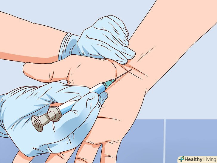 Дозвольте фахівцеві взяти зразок крові.коли медсестра вибере відповідне місце, вона належним чином підготує його, а потім візьме кров за допомогою голки.[12]- Спочатку вашу шкіру протруть спиртом. Можливо, вам також зроблять укол знеболюючого засобу.