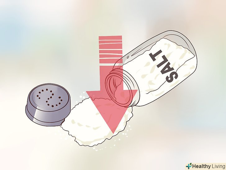 Знизьте споживання натрію.зайвий натрій затримує в організмі воду, і серцю з артеріями доводиться важче працювати, щоб перекачувати кров. Вживайте не більше 1.500 міліграмів натрію в день і утримуйтеся від кухонної солі, так як в ній часто містяться штучні добавки, які шкідливі для серця.[5]- Пам'ятайте про те, що в одній чайній ложці (10 грамів) кухонної солі міститься близько 2300 міліграмів натрію. В середньому одна людина з'їдає близько 3400 міліграмів натрію в день, що більш ніж в два рази перевищує рекомендовану дозу.