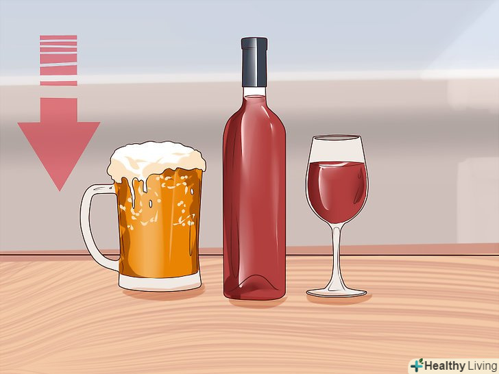 Обмежте вживання алкоголю.дослідження показали, що в помірній кількості спиртні напої здатні благотворно впливати на серце, проте вживання більше 1-2 порцій алкоголю в день призводить до підвищення кров'яного тиску і може негативно діяти на серці. Знизьте вживання алкоголю і проконсультуйтеся з цього питання зі своїм лікарем.[6]- "Одна порція" спиртного становить 350 мілілітрів пива, 150 мілілітрів вина або 45 мілілітрів міцного напою.[7]