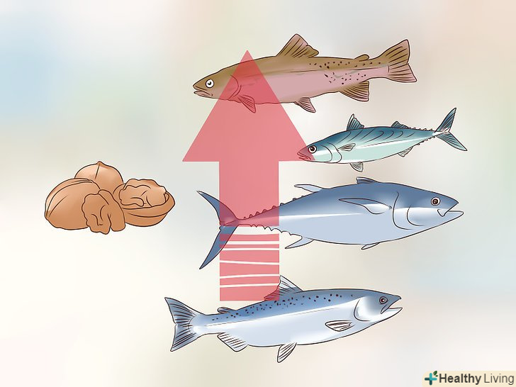 Збільште споживання омега-3 жирних кислот.багата омега - 3 жирними кислотами їжа зміцнює здоров'я серця, знижує кров'яний тиск і зменшує ризик серцевих захворювань. Велика кількість омега - 3 жирних кислот міститься в волоських горіхах, лососі, тунці, скумбрії, сардинах і форелі.- В ідеалі за один день слід з'їдати 2-3 порції багатої корисними жирами їжі. Для зниження діастолічного тиску корисні не тільки омега-3 жирні кислоти, але і практично будь - які моно-і поліненасичені жири. Ці жири містяться в багатьох рослинних оліях, в тому числі в оливковій, каноловому, арахісовому, сафлоровому і кунжутному маслі.[9]