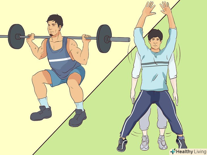 Займайтеся спортом хоча б по 30 хвилин в день протягом більшості днів тижня.фізичні вправи зміцнюють серцевий м'яз, покращують кровообіг і допомагають серцю легше перекачувати кров. Виберіть відповідний Вам вид фізичної активності і включіть його в свій повсякденний розпорядок. Займіться пішою ходьбою, бігом, їздою на велосипеді, танцями або плаванням, або порадьтеся зі своїм лікарем щодо того, які вправи найкраще підходять вам.[10]- Пам'ятайте, що рекомендована тривалість тренувань залежить від виду вправ. Як правило, щотижня слід займатися хоча б 75 хвилин інтенсивними або 150 хвилин помірними вправами. Перш ніж приступити до тренувань, проконсультуйтеся з лікарем щодо допустимих фізичних навантажень.[11] наприклад, якщо у вас проблеми з серцем, то високі навантаження можуть виявитися занадто важкими для вас; в цьому випадку лікар порадить займатися більш легкими вправами до тих пір, поки стан вашого здоров'я не покращиться.