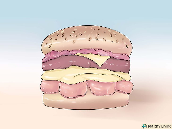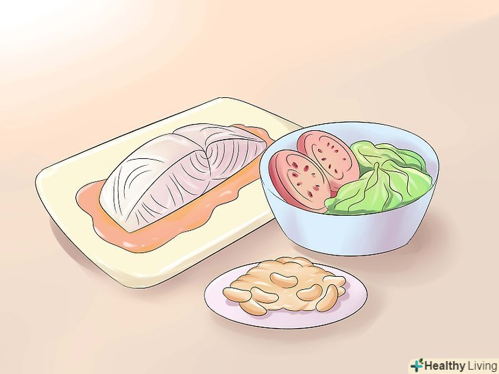 - Уникайте їжу з вмістом насичених і ненасичених жирів. Зазвичай такі жири містяться в молочних продуктах, включаючи молоко і вершкове масло, в тваринних жирах і в оброблених м'ясних продуктах. Замість цього споживайте продукти, багаті мононасиченими і поліненасиченими жирами, наприклад, рослинні масла (особливо корисно оливкова олія) і жирну рибу (наприклад, тунець і лосось).