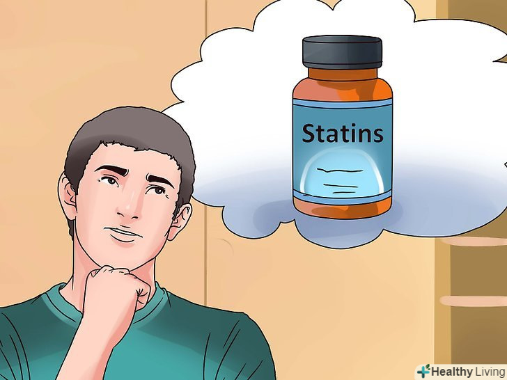 Знизити рівень холестерину.як зазначалося вище, високий рівень холестерину також є фактором ризику, що сприяє розвитку атеросклерозу. Рівень холестерину може бути підвищеним через ваш раціон харчування або просто тому, що ваш організм сам по собі виробляє занадто багато холестерину. Крім таких заходів як схуднення, обмеження вживання насичених і транс-жирів, а також уважне вивчення складу купуються продуктів, для зниження рівня холестерину вам може знадобитися і медикаментозне лікування. Проконсультуйтеся з лікарем. Наприклад, статини блокують речовину, необхідну печінки для вироблення холестерину, і в результаті печінка змушена брати холестерин з крові. Статини не тільки знижують рівень холестерину, але і допомагають організму вбирати його відкладення на стінках судин, що допомагає впоратися з коронарною недостатністю. Інші препарати здатні також захистити артерії шляхом зниження запалення, яке, як вважають, служить однією з причин хвороб серця.[17]