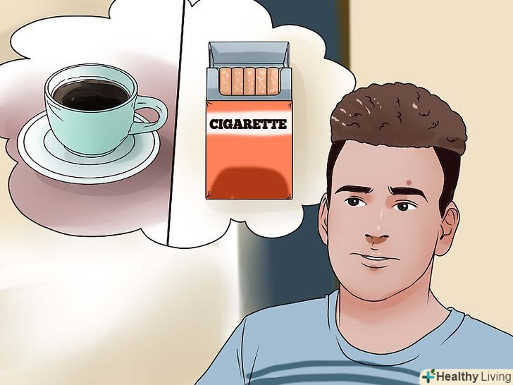 Визначте провокуючі фактори.придивіться до того, в яких ситуаціях ви зазвичай курите. Деякі курять, коли п'ють каву або алкогольні напої, після їжі або під час перегляду телевізора, а також в суспільстві інших курців. Визначивши сприяють курінню фактори, постарайтеся змінити свою поведінку. Наприклад, якщо ви курите при перегляді улюблених телевізійних шоу, Дивіться їх в тренажерному залі під час тренувань або взагалі відмовтеся від перегляду телевізора. Спробуйте поступово перейти з кави на чай і уникайте суспільства курців.[8]- Важливо заручитися підтримкою сім'ї та друзів, особливо тих, хто курить. Попросіть їх не палити у вашій присутності. Складно кинути палити, якщо навколо вас часто курять і ви відчуваєте запах диму.