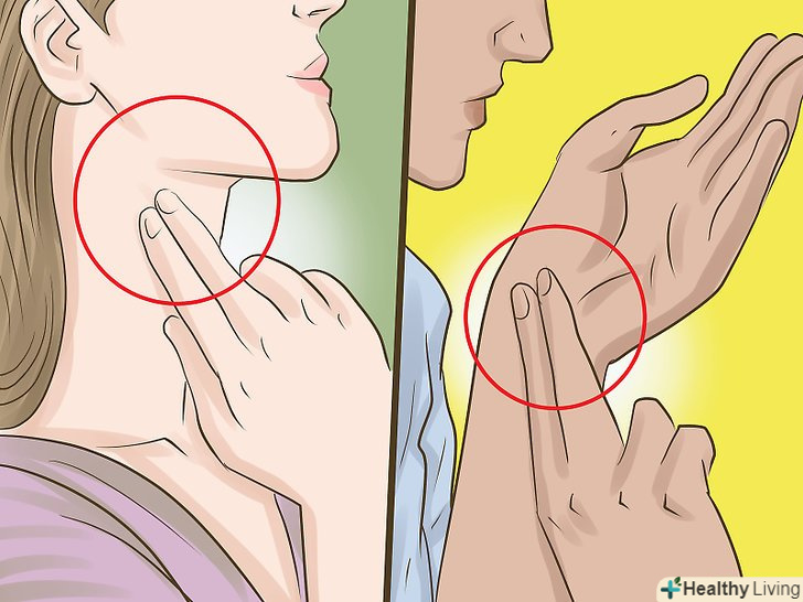 - При перевірці пульсу не натискайте занадто сильно на шию або зап'ясті. Надто сильне натискання, особливо на шиї, може викликати запаморочення і втрату рівноваги.[18]