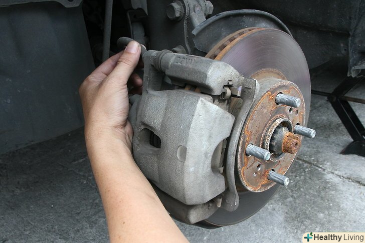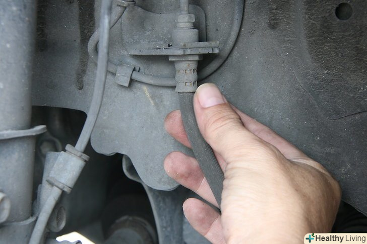 Підчепіть трубку до випускного клапана.відріжте шматок прозорої пластикової трубки (трубка для акваріума підійде), наживіть один кінець трубки на випускний болт.- Покладіть інший кінець трубки в маленьку прозору пляшку, попередньо налив в неї гальмівну рідину, - це буде перешкоджати попаданню повітря в гальмівний циліндр.