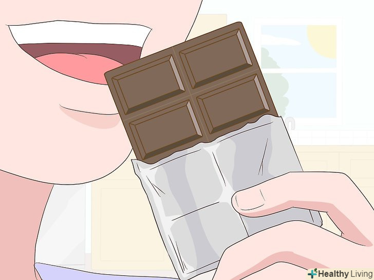 Балуйте себе чорним шоколадом (в невеликих кількостях). Шоколад багатий флавонолами. Ці поживні речовини впливають на розширення кровоносних судин, тим самим знижуючи кров'яний тиск.[17]- В цілому вам допоможе шоколад в будь-якому вигляді, проте темний шоколад і чистий какао містять більш високий відсоток флавонолів, тому підійдуть краще.