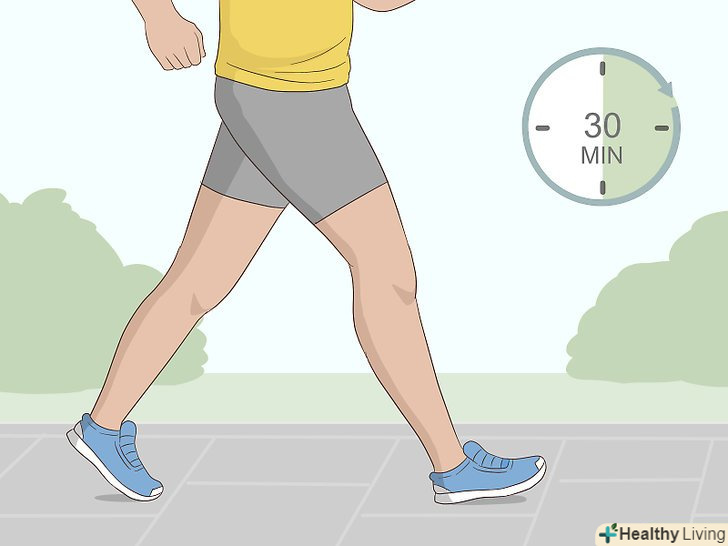 Регулярно виділяйте 30 хвилин на помірні фізичні вправи.якщо ви будете намагатися кожен день вправлятися хоча б по 30 хвилин, ви можете швидко і істотно знизити артеріальний тиск. Виконуйте фізичні вправи і ведіть активний спосіб життя.[19]- Перш ніж збільшити навантаження, обов'язково проконсультуйтеся з лікарем. Різке збільшення фізичного навантаження підвищує ризик серцевого нападу або інсульту.