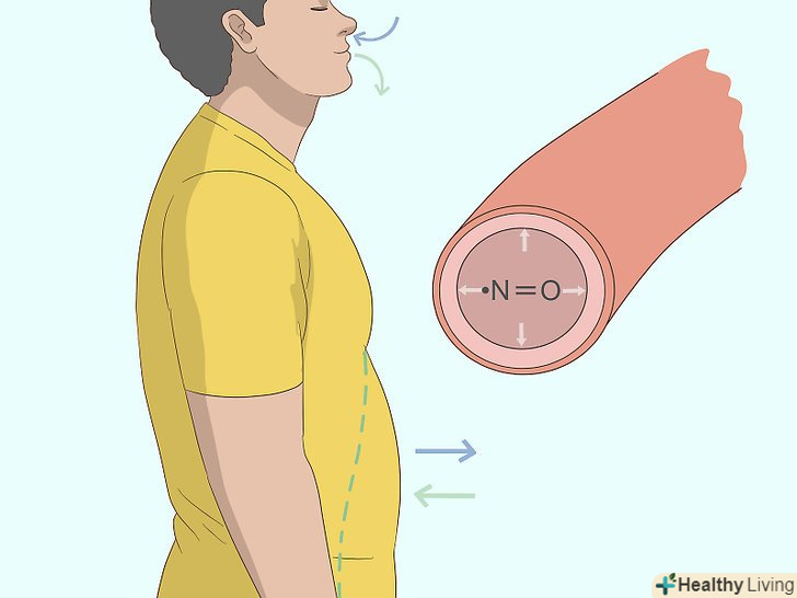 Глибоко дихайте.повільне медитативне дихання розслабляє організм, що призводить до виділення більшої кількості оксиду азоту і зменшення кількості гормонів стресу.- Оксид азоту розширює судини, знижуючи тиск.