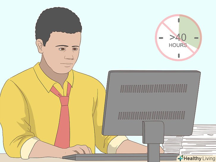Менше працюйте.дослідження показують, що у тих, хто працює більше 40 годин на тиждень, на 15 відсотків зростає ризик розвитку підвищеного кров'яного тиску. Таким чином, якщо вам потрібно швидко знизити артеріальний тиск, постарайтеся скоротити робочі години, наскільки це можливо.[20]- Це особливо важливо, якщо ваша робота пов'язана з психологічними навантаженнями або стресом. Через гормонів стресу кровоносні судини звужуються, внаслідок чого серцю стає складніше прокачувати кров через них. В результаті кров'яний тиск підвищується.
