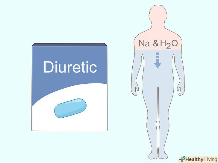 Запитайте лікаря про діуретики.діуретики виводять з організму надлишок натрію і води.[23]- Так як натрій є відомою причиною високого кров'яного тиску, видалення надлишку натрію з організму може викликати значне падіння артеріального тиску.