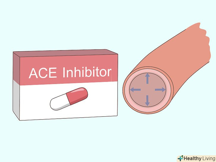 Спробуйте інгібітори АПФ. АПФ розшифровується як "ангіотензинперетворюючий фермент". Завдяки цьому ферменту в організмі виробляється ангіотензин, — речовина, що викликає звуження судин.[25]- Інгібітор АПФ сприяє розширенню кровоносних судин, що полегшує кровообіг і викликає зниження кров'яного тиску.