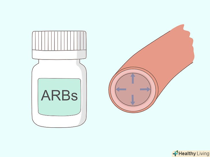 Дізнайтеся про блокатори рецепторів ангіотензину II.ці препарати безпосередньо блокують дію ангіотензину, який відповідальний за звуження артерій.[26]- Для того щоб вплинути на кровоносну судину, ангіотензину необхідно приєднатися до рецептора. Такі препарати блокують рецептори, тим самим запобігаючи з'єднання.