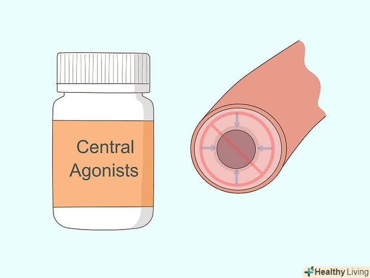 Вивчіть інформацію про агоністів центральних рецепторів.ці препарати дозволяють з легкістю запобігти скороченню кровоносних судин, що полегшує кровообіг.[31]- Зверніть увагу на те, що цей ефект схожий з ефектом від альфа-бета адреноблокаторів.