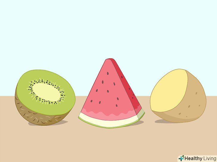 Їжте фрукти та овочі, які знижують кров'яний тиск.у той час як фрукти і овочі в цілому є важливою частиною збалансованої дієти, деякі з них особливо благотворно впливають на зниження артеріального тиску.- Їжте ківі. У недавньому дослідженні, проведеному західними кардіологами, вчені виявили, що, якщо вживати в їжу по три ківі щодня, за вісім тижнів можна значно знизити систолічний артеріальний тиск. У ківі міститься велика кількість антиоксиданту, відомого як лютеїн.[13]