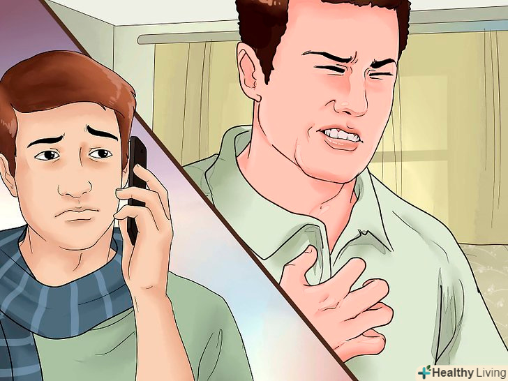 Якщо у вас Серцевий Напад, негайно зателефонуйте на номер швидкої медичної допомоги.якщо у вас стався серцевий напад, на рахунку буде кожна хвилина. Деякі симптоми абнормальних шумів в серці схожі на симптоми серцевого нападу. Якщо ви не впевнені, що означають симптоми, перестрахуйтеся і зателефонуйте в швидку. До симптомів серцевого нападу відносяться:[5]- Відчуття болю або тиску в грудній клітці