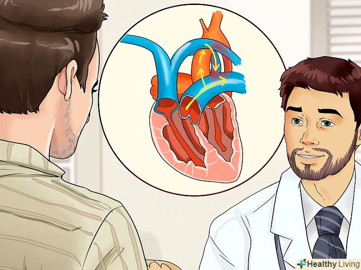 Встановіть симптоми.якщо у вас функціональні шуми в серці, велика ймовірність того, що крім звуків, почутих лікарем, у вас більше не буде ніяких інших симптомів. Однак абнормальние шуми в серці можуть вказувати на наявність серйозного захворювання. Якщо у вас спостерігаються такі симптоми, негайно зверніться до лікаря:[2][3][4]- Блакитний відтінок шкіри. Найчастіше виникає на кінчиках пальців і на губах.