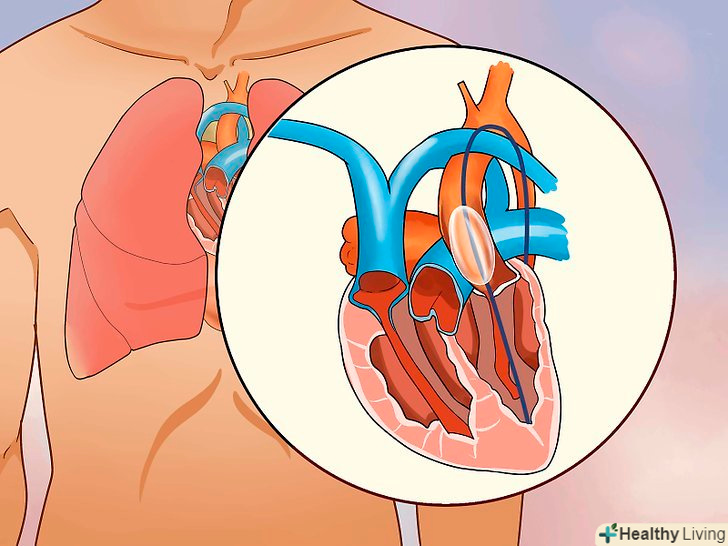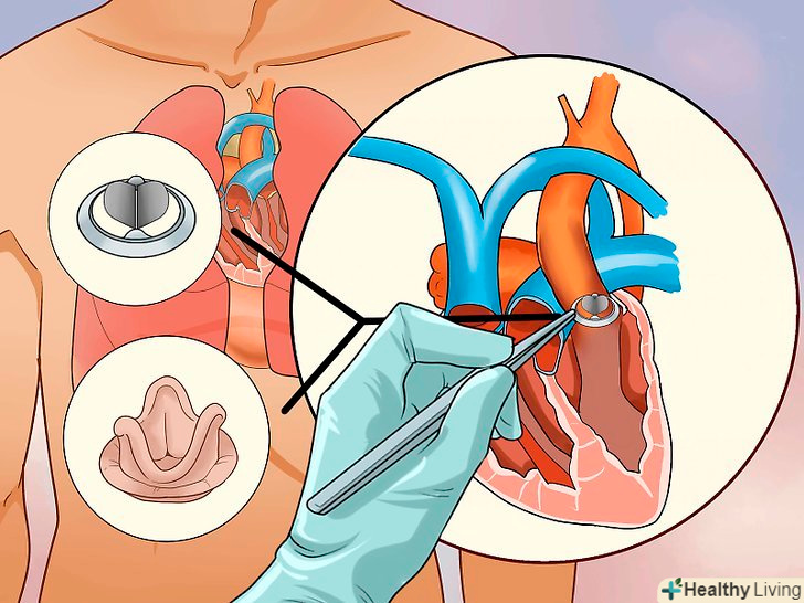 Виправте проблему з пошкодженим або протікаючим клапаном.медикаментозне лікування може знизити фізичний стрес, що чиниться на ваші клапани, але якщо вони потребують відновлення, тоді буде потрібно хірургічне втручання. Існує кілька способів, за допомогою яких ваш лікар може це зробити:[19][20]- Вальвулопластика. Під час цієї процедури лікар використовує балон на кінці катетера для розширення серцевого клапана. Коли балон виявиться в потрібному місці, його надувають. Збільшення балона змушує клапан відкритися ширше.