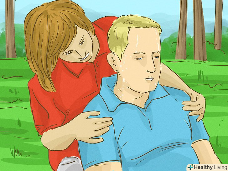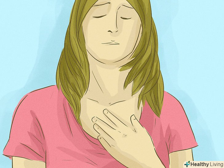 Припиніть будь-яку фізичну активність. Сядьте, постарайтеся розслабитися і дихати рівно. [25]- Послабте тісний одяг, наприклад комір сорочки і ремінь.