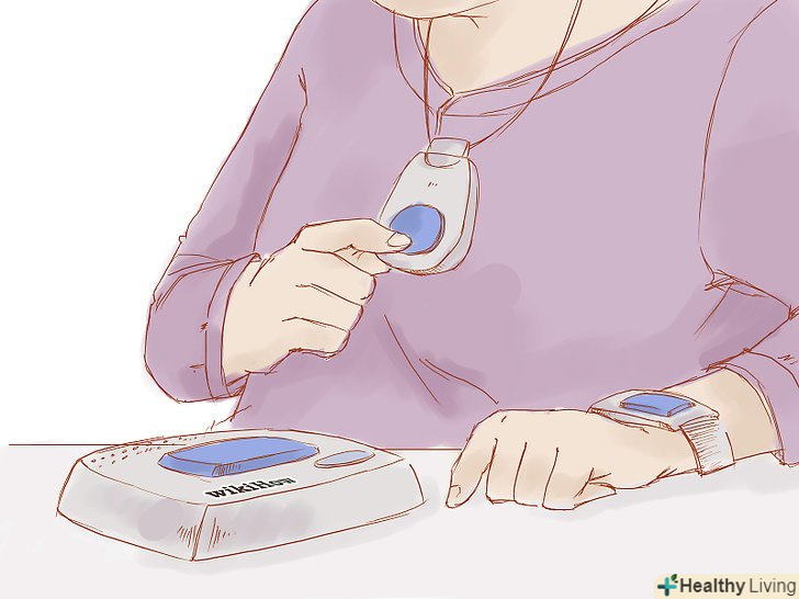 Використовуйте електронний пристрій реагування на надзвичайні ситуації, який можна носити на шиї або в кишені.ви можете активувати цей пристрій, коли ви відчуваєте Серцевий Напад або вам потрібна інша невідкладна медична допомога, а у вас немає можливості зателефонувати в службу 911.- Навіть якщо у вас є цей електронний пристрій, Ви все одно повинні зателефонувати за номером 911, якщо ви в змозі зробити це. Цей пристрій не настільки надійний, як виклик 9-1-1 по телефону, і ви, ймовірно, отримаєте допомогу швидше, зателефонувавши за номером 911.