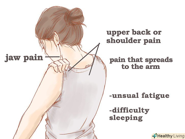 - Ви можете також випробувати біль або дискомфорт в інших областях верхньої частини тіла, в лівому плечі, спині, шиї, щелепи, або шлунку.