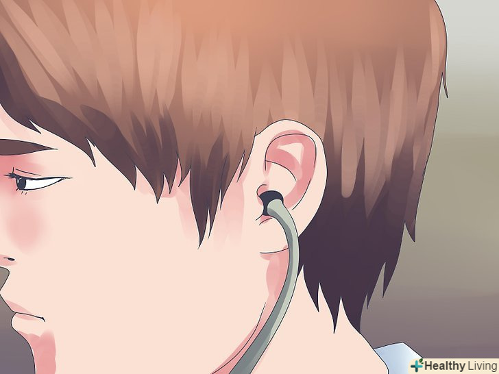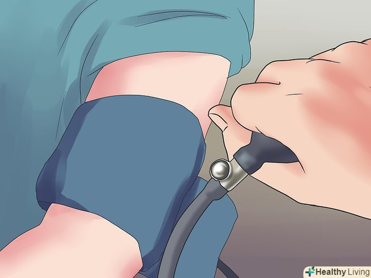 Надуйте манжету, закріплену на руці.Візьміть тонометр і закріпіть манжету на біцепсі тієї ж руки, на якій Ви знайшли пульс. Більшість сучасних манжет мають липучки, що полегшує їх використання. Добре (але не туго) закріпивши манжету на руці, використовуйте грушу для нагнітання в неї повітря. Дивіться на манометр-потрібно, щоб він показував тиск приблизно на 30 мм рт. ст. вище, ніж очікуваний показник вашого систолічного тиску.[7]- У міру надування манжети піднесіть головку фонендоскопа до місця, де вам вдалося намацати пульс (якщо ви не змогли цього зробити, то до внутрішньої сторони ліктьового згину). Слухайте — якщо ви накачали манжету в достатній мірі, то ви нічого не почуєте на цьому етапі.
