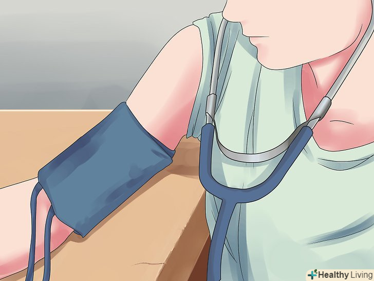 Намацайте свій пульс.якщо ви не впевнені, які значення вашого систолічного і діастолічного тиску в спокої, то виміряйте тиск механічним тонометром — це абсолютно не складно. Все, що вам знадобиться — це тонометр і фонендоскоп, які ви зможете без зусиль знайти в найближчій аптеці. Ви повинні перебувати в стані спокою; сядьте і намацайте пульс в області внутрішньої сторони ліктьового згину або зап'ястя під підставою великого пальця. Покладіть фонендоскоп, щоб підготуватися до наступного кроку.- Якщо ви не можете намацати пульс, то спробуйте використовувати фонендоскоп. Коли ви почуєте легкі, постійні удари - Ви знайшли потрібну точку.
