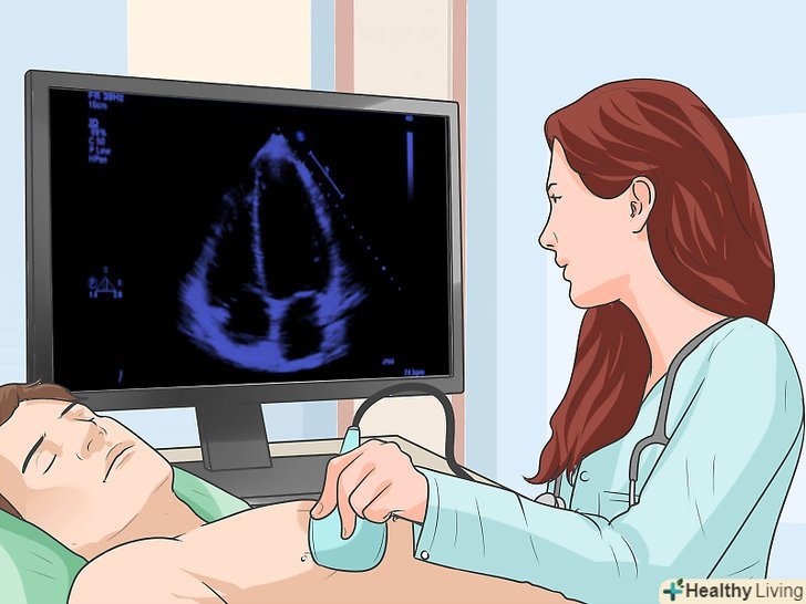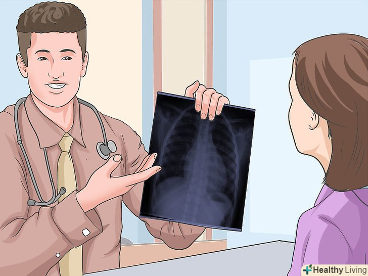 Зробіть рентген грудної клітини.[10] якщо лікар запідозрить, що у вас проблеми з легенями або серцем (наприклад, мітральний стеноз), насамперед він дасть направлення на рентген грудної клітини. Рентген дозволить лікарю оглянути ваші легені на ознаки скупчення рідини (набряк легенів), яким може супроводжуватися мітральний стеноз. Лікар зможе оцінити збільшення камер серця, наприклад, правого передсердя, що також може вказувати на мітральний стеноз.- Рентген грудної клітини дозволить підтвердити або виключити інші захворювання серця або легенів, які мають схожі симптоми зі стенозом мітрального клапана.