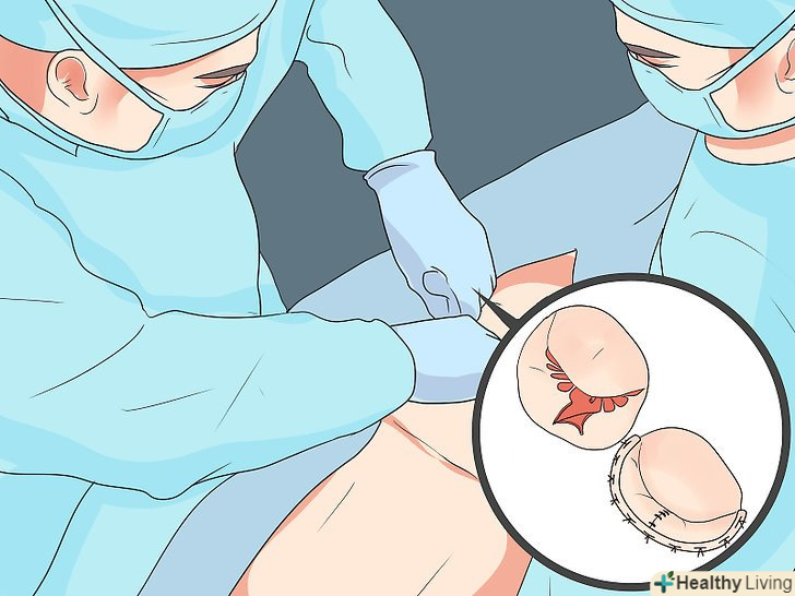 Замініть серцевий клапан, якщо він не підлягає виправленню звичайною хірургічною операцією.при вадах аортального і мітрального клапанів нерідко потрібно їх заміна. Зазвичай лікарі максимально прагнуть використовувати для заміни клапана тканини самого пацієнта, але якщо це неможливо, можуть бути використані тканини донорського серця, тварини або штучний металевий клапан. Металевий клапан має найбільший термін служби, але він збільшує ризик утворення тромбів. Якщо вам вживлять такий клапан, вам доведеться до кінця життя приймати антикоагулянти. Новий клапан може бути імплантований різними способами:[23][24][25][26]:- Транскатетерна імплантація аортального клапана. Даний метод застосовується для заміни аортального клапана і має помітні переваги перед відкритою операцією на серці, так як є менш інвазивним. Катетер вводять через артерію ноги або через розріз на грудях і з його допомогою імплантують новий клапан.