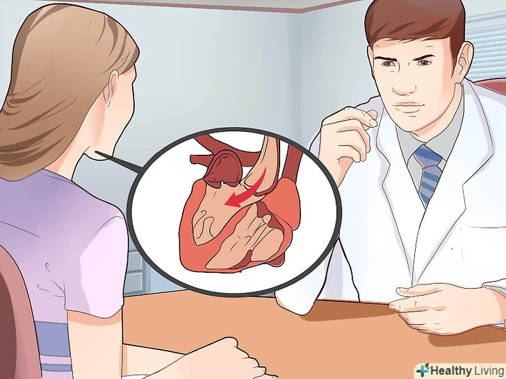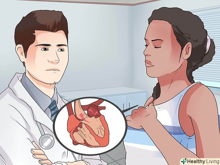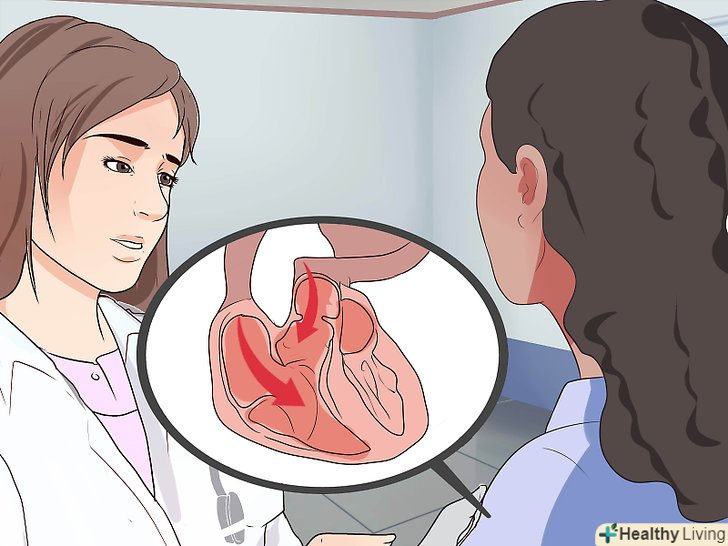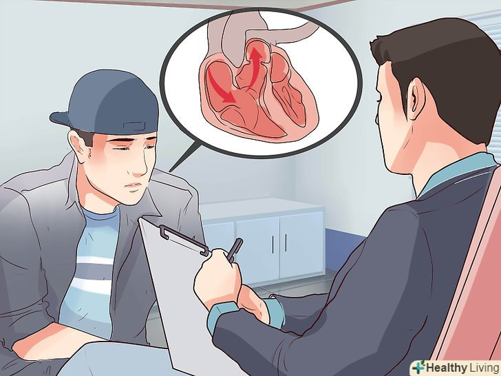 Попросіть кардіолога прослухати ваше серце.прослухавши ваше серце і вимірявши частоту ударів, кардіолог отримає чимало інформації про його роботу. У багатьох випадках порушення в роботі серцевих клапанів супроводжуються шумами, типовими для протікає через серце крові. Безпосередньо під час прийому кардіолог зробить з вами нижчезазначені дії.[7][8][9]- Лікар прослухає роботу серця. Якщо при цьому будуть виявлені шуми, він оцінить їх силу і точний момент появи шумів в процесі серцебиття. Це допоможе кардіолога визначити серйозність порушення в роботі серця і конкретний проблемний клапан.