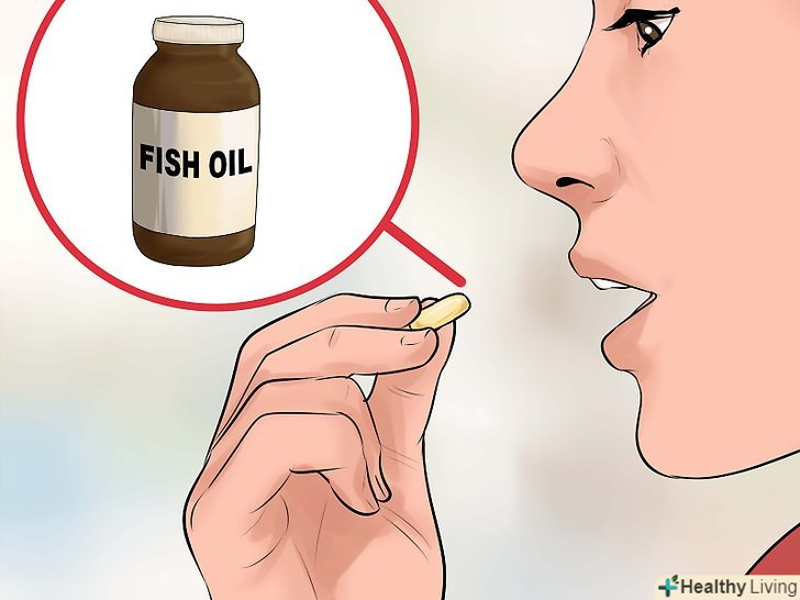 Приймайте добавки з риб'ячим жиром.якщо ви хочете отримувати достатньо корисних омега - 3 жирних кислот, але не переносите рибу, можна просто приймати біологічно активні добавки з цими кислотами. Було показано, що такі добавки знижують рівень тригліцеридів у дорослих.[32] у риб'ячому жирі містяться такі корисні інгредієнти, як ейкозапентаєнова кислота (ЕПК) і докозагексаєнова кислота (ДГК). Приймайте біологічно активні добавки відповідно до прикладених вказівок.