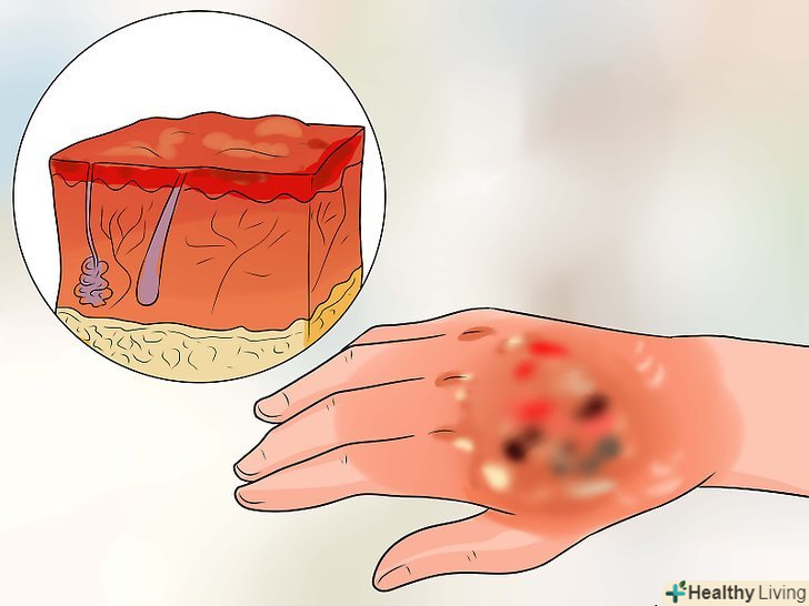 Навчіться визначати опіки, які потребують медичної допомоги.незважаючи на те що опік може бути незначним, наприклад, першого або другого ступеня, ви все ще можете потребувати медичної допомоги, якщо ви помічаєте нижчеупомянутие симптоми. Якщо опік зачіпає не тільки шкіру одного або декількох пальців, але і тканини, що лежать під нею, вам слід звернутися до лікаря якомога швидше. Через опіку може припинитися приплив крові до пальців, що може привести до їх ампутації при відсутності необхідного лікування. [10]- Обов'язково проконсультуйтеся з лікарем, якщо опік покриває обличчя, шию, більшу частину вашої руки, пахову область, ноги, ступні, сідниці або суглоби.[11]