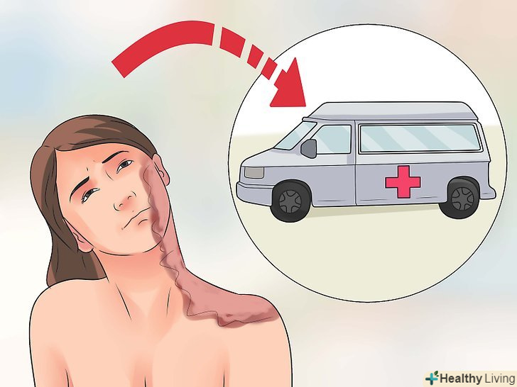 Забезпечте належний догляд людині, яка отримала опік.якщо опік отримав ваш близький, залишайтеся поруч з ним, після того, як ви викликали швидку допомогу. Якщо він не реагує або виникає небезпека розвитку шоку, обов'язково повідомте про це в службу швидкої допомоги.- Якщо людина не дихає, зробіть штучне дихання, поки ви чекаєте машину швидкої допомоги.[19]