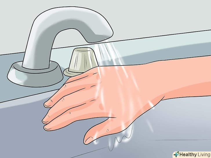 Охолодіть місце опіку.після того, як ви помиєте місце опіку, охолодіть його в прохолодній воді. Не використовуйте лід, оскільки це може призвести до ще більшого пошкодження шкіри. Підставте руку під струмінь води кімнатної температури. Тримайте руку під струменем прохолодної води протягом 15 - 20 хвилин. Потім змочіть рушник в прохолодній воді і прикладіть до місця опіку.- Перед тим як прикладати Рушник до місця опіку, змочіть його у воді і помістіть в холодильник, щоб воно стало холодним.