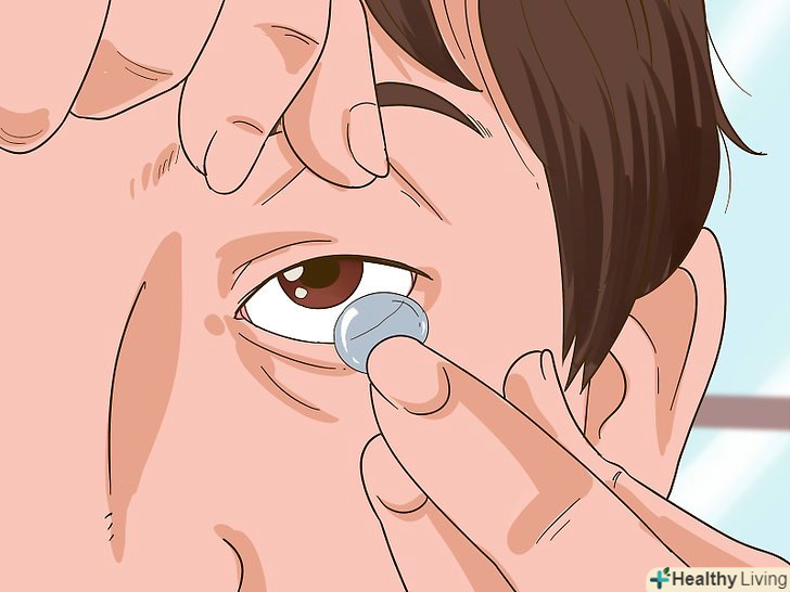 Зніміть контактні лінзи.якщо на вас надіті контактні лінзи і їх можна легко зняти, зараз же це зробіть. Після цього відразу ж промийте очі. Якщо вам не вдається зняти лінзи, попросіть когось, кому ви довіряєте, вам допомогти або зверніться до лікаря.[7]